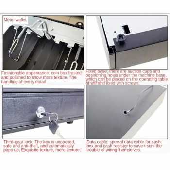 | Sistem Kunci 3 Mode Fitur three-gear lock memungkinkan Anda mengatur sistem keamanan sesuai kebutuhan operasional harian. Mode manual cash drawer coin memudahkan akses cepat, mode elektrik memungkinkan laci terbuka otomatis saat transaksi, dan mode terkunci penuh menjaga uang tetap aman saat toko tutup. Sistem ini sangat penting untuk mengurangi risiko pencurian dan meningkatkan kontrol akses kasir. |