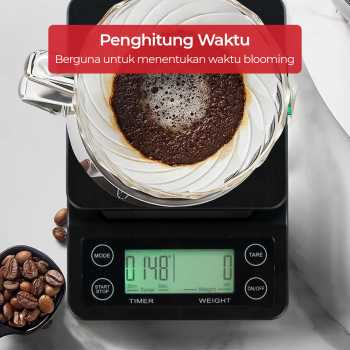 | Dibekali Fungsi Timer Inilah timbangan yang Anda butuhkan untuk menyeduh kopi dengan waktu dan takaran yang presisi. Bagaimana tidak, timbangan telah dibekali fungsi timer selama 3 menit. Durasi ini tentunya ideal untuk mengekstraksi berbagai jenis kopi. |