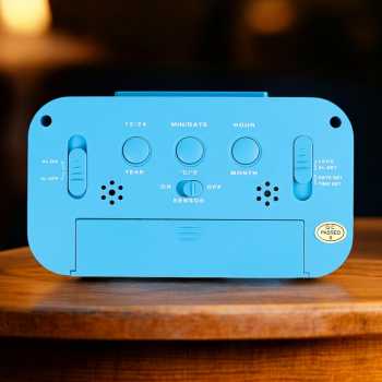 Jam meja modern minimalis dengan layar LCD besar, backlight lembut, dan alarm pengingat. Dilengkapi sensor suhu ruangan real-time serta pilihan format waktu 12/24 jam. Praktis tanpa kabel, hanya memakai 3 baterai AAA. Desain simpel dengan warna menarik, cocok jadi dekorasi sekaligus fungsional di rumah atau kantor.