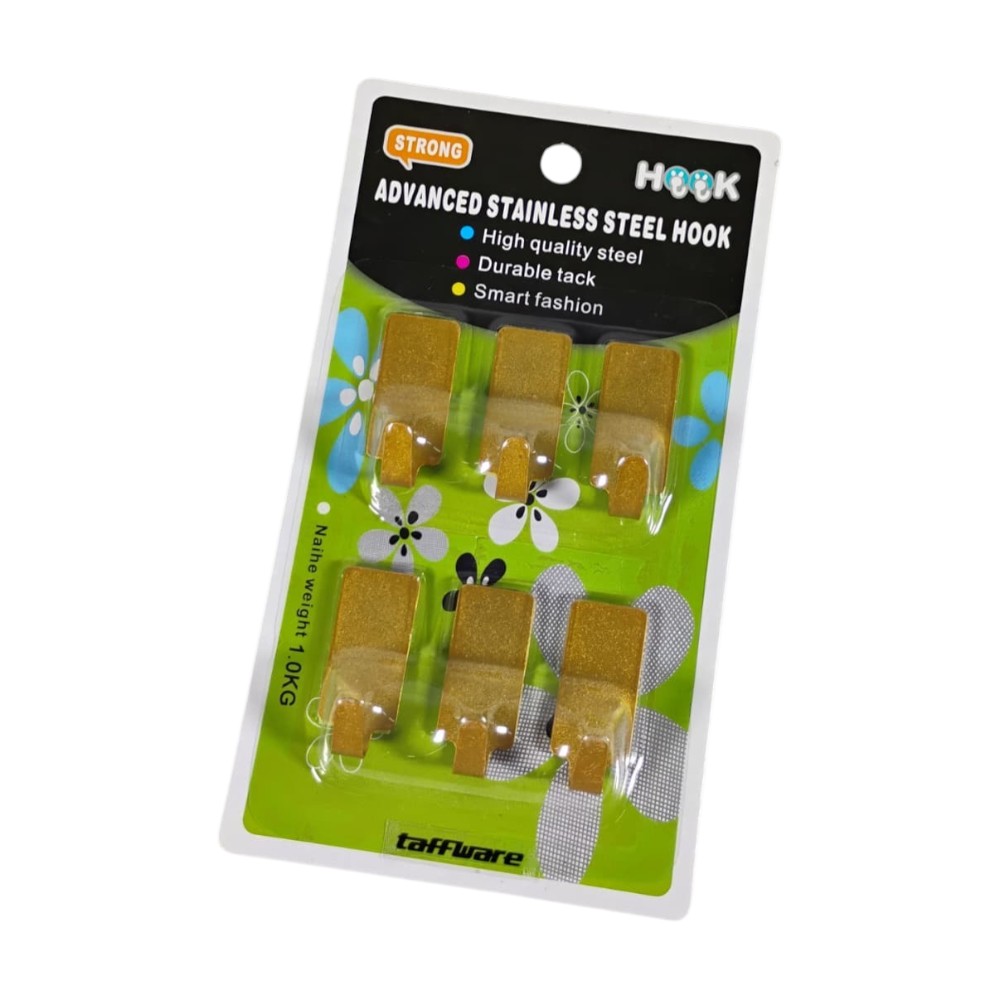 Gantungan dinding adhesive berbahan stainless steel dengan desain J anti jatuh. Perekat kuat tanpa bor, hemat ruang, dan praktis. Dapatkan 6 PCS sekaligus untuk menggantung kunci, handuk, kabel, atau topi pada berbagai permukaan datar.