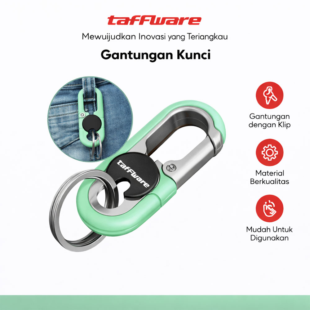 Bawa dan jaga kunci agar tidak mudah hilang menggunakan gantungan kunci carabiner dari Taffware. Kombinasi desain keren dan ergonomis membuat Anda bisa menggantung aneka kunci hingga barang kecil lainnya. Material zinc alloy dan stainless steel kokoh cocok untuk penggunaan jangka panjang.