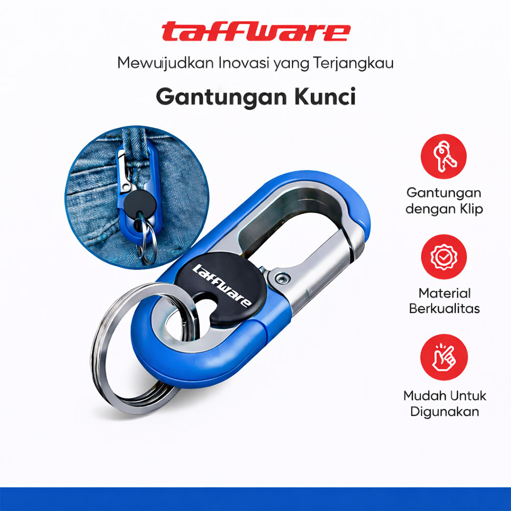 Bawa dan jaga kunci agar tidak mudah hilang menggunakan gantungan kunci carabiner dari Taffware. Kombinasi desain keren dan ergonomis membuat Anda bisa menggantung aneka kunci hingga barang kecil lainnya. Material zinc alloy dan stainless steel kokoh cocok untuk penggunaan jangka panjang.