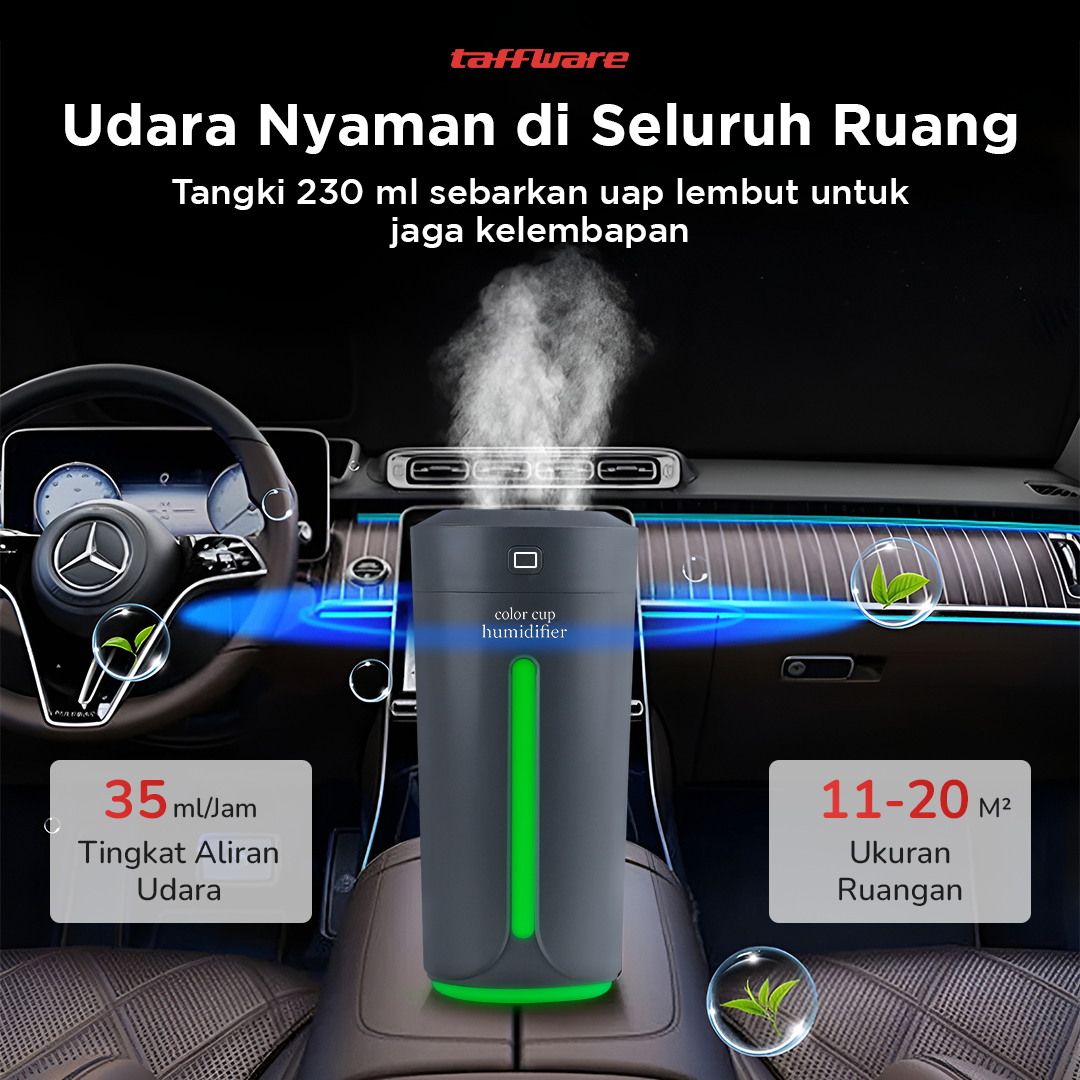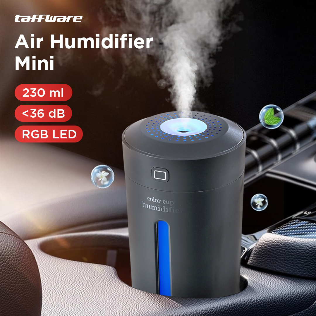Cegah berbagai masalah kesehatan akibat terlalu lama bekerja berkendara di dalam mobil ber-AC dengan humidifier dari Taffware HUMI. Kabut halus yang dihasilkan menjaga ruangan tetap lembap. Kombinasi tangki 230 ml dan RGB LED hasilkan aneka cahaya lembut yang canitk. Cocok digunakan untuk menjaga kelembapan di dalam mobil, ruang kerja, dan aneka ruangan lainnya.