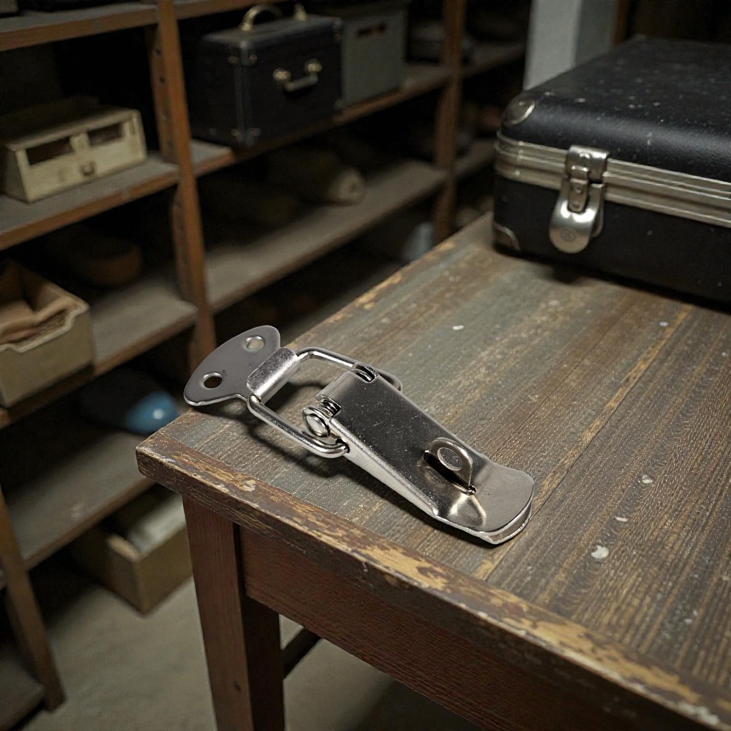 Pengait peti kokoh berbahan stainless steel dan besi tebal, dilengkapi slot gembok untuk keamanan ganda. Fleksibel untuk koper, brankas, hingga kotak perkakas. Tersedia ukuran S hingga XL, tahan karat dan awet digunakan.