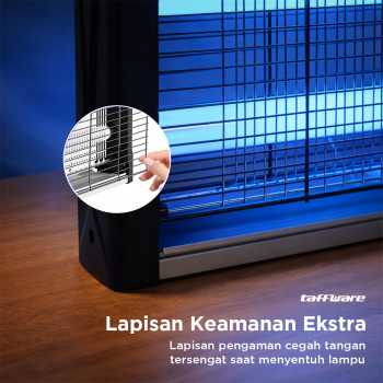 | Lapisan Keamanan Ekstra Tak perlu khawatir tangan luka atau tersengat saat menyentuh lampu. Dilengkapi pagar pengaman, lampu anti nyamuk ini aman diletakkan di dalam ruangan. |