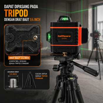 | Berbagai Opsi Penempatan Selain diletakkan di permukaan lantai, laser level ini dapat dipasang pada tripod dengan drat baut 1/4 Inch sehingga Anda dapat mengukur di bagian yang lebih tinggi untuk mendapat keakuratan pengukuran secara maksimal. Dukungan tripod membuat laser level ini lebih fungsional. |