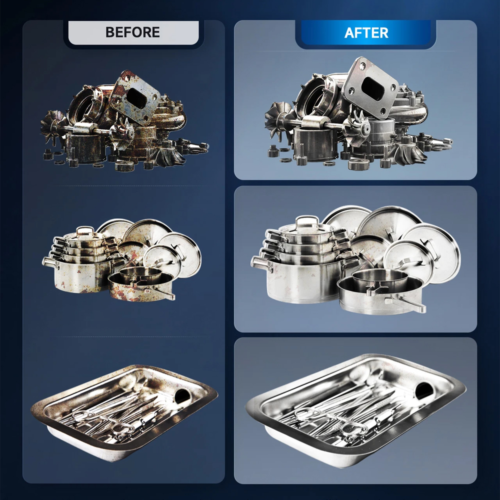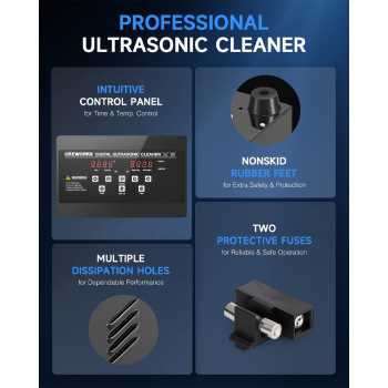 | Teknologi Ultrasonic 40 KHz Mesin pembersih ini menggunakan teknologi ultrasonik dengan frekuensi 40 KHz dan daya 120 W yang menghasilkan gelombang suara berfrekuensi tinggi untuk menciptakan jutaan gelembung kecil. Gelembung ini bekerja untuk mengangkat kotoran dan noda secara efektif dari permukaan, mencapai area yang sulit dijangkau dan memberikan pembersihan yang lebih mendalam dan menyeluruh. |