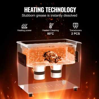 | Teknologi Ultrasonic 40 KHz Mesin pembersih ini menggunakan teknologi ultrasonik dengan frekuensi 40 KHz dan daya 240 W yang menghasilkan gelombang suara berfrekuensi tinggi untuk menciptakan jutaan gelembung kecil. Gelembung ini bekerja untuk mengangkat kotoran dan noda secara efektif dari permukaan, mencapai area yang sulit dijangkau dan memberikan pembersihan yang lebih mendalam dan menyeluruh. |