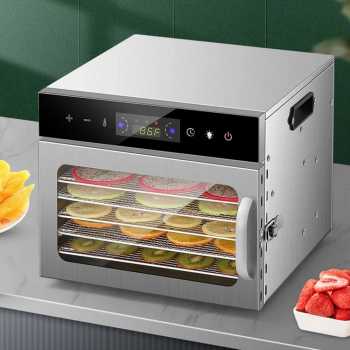 Mesin pengering makanan mampu mengurangi kadar air dengan menggunakan panas bersuhu rendah secara merata. Anda bisa menggunakannya untuk mengeringkan berbagai makanan agar menjadi lebih awet seperti buah, daging, sayur, dan lainnya. Terdiri dari rear fan bertenaga, pengeringan 360°, rentang suhu 30-90 °C, rentang timer hingga 24 jam, dan wadah stainless steel food grade yang aman untuk makanan. Hadir dengan pilihan varian 6 layer atau 12 layer yang bisa Anda pilih sesuai dengan kebutuhan.