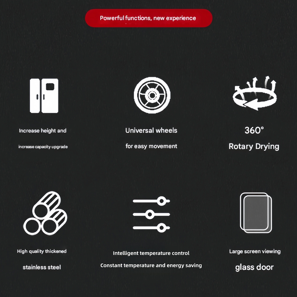 | Monitoring Proses Mudah Hadir dengan kaca transparan yang memungkinkan Anda bisa memantau proses pengeringan secara langsung tanpa perlu membuka pintu, sehingga suhu dan sirkulasi udara tetap stabil dan hasil pengeringan lebih merata. |