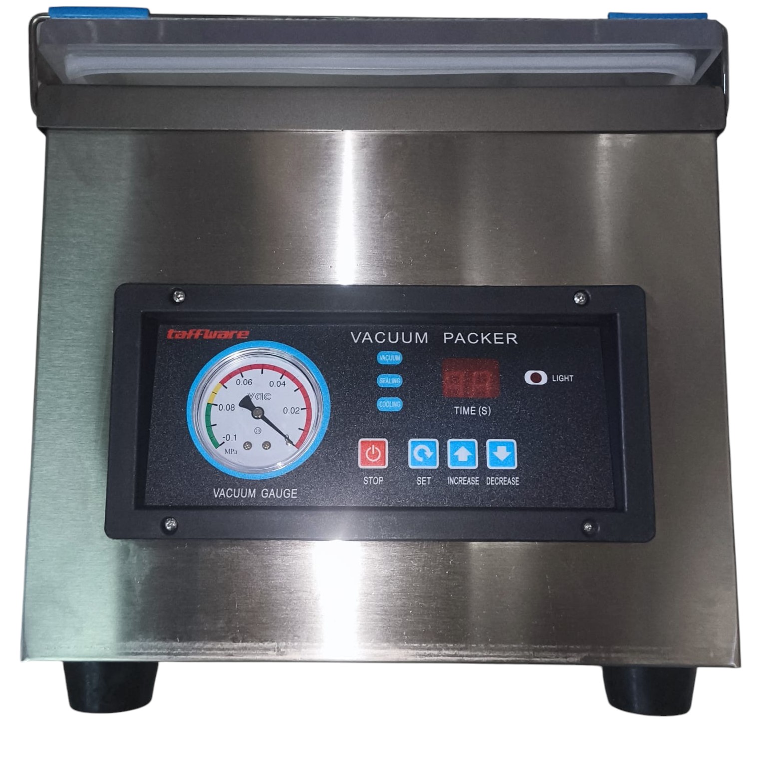 Ingin menyimpan makanan agar lebih awet dan tidak mudah busuk? Sekarang saatnya Anda mencoba vakum sealer dari Taffware. Dirancang khusus untuk makanan, mesin ini dapat menyedot oksigen di dalam kemasan dan menyegel makanan. Kini makanan aman dari kontaminasi bakteri dan jamur yang bisa menyebabkan busuk. Ukurannya yang besar dapat menyegel plastik vakum dengan ukuran hingga 26 cm.