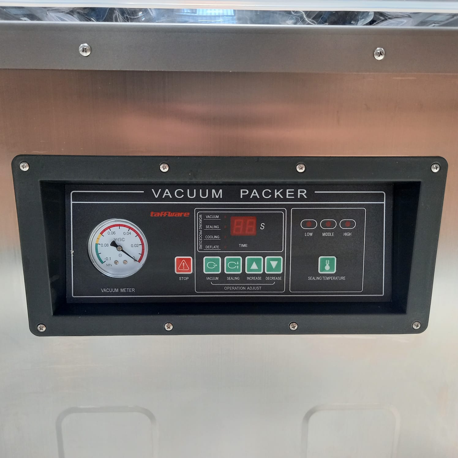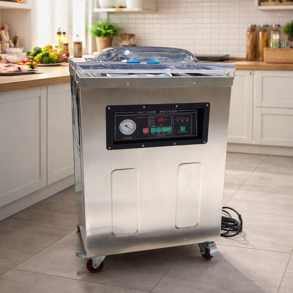 Ingin menyimpan makanan agar lebih awet dan tidak mudah busuk? Sekarang saatnya Anda mencoba vacuum sealer dari Taffware. Dirancang khusus untuk makanan, mesin ini dapat menyedot oksigen di dalam kemasan dan menyegel makanan. Mesin ini dapat ditempatkan di tempat kerja tanpa memakan banyak ruang. Cocok digunakan di dapur profesional, toko makanan, atau UMKM. Ukuran chambernya dapat menyegel plastik vacuum dengan ukuran di bawah 50 cm.