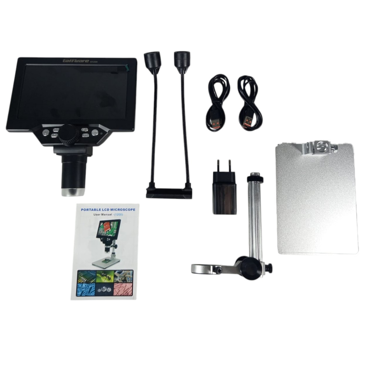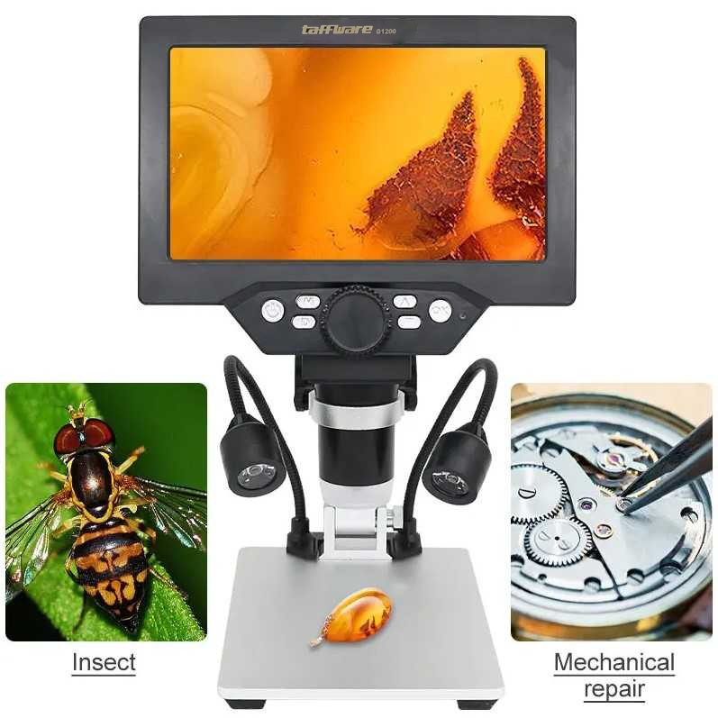 Mikroskop pada awalnya hanya digunakan untuk pengamatan di lab-lab saja. Namun kini, Anda bisa memilikinya di rumah. Mikroskop ini dibekali monitor yang dapat menampilkan hasil pembesaran objek dari lensa kameranya. Dengan pembesaran hingga 1200 kali, mikroskop ini dapat digunakan untuk berbagai kebutuhan mulai dari kebutuhan belajar mengajar, reparasi barang elektronik, dan masih banyak lagi.