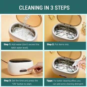 | Mudah untuk Digunakan Untuk penggunaan alat ini sangatlah mudah. Anda hanya perlu menuangkan air ke wadah yang ada di mesin, letakkan barang yang ingin Anda bersihkan, kemudian nyalakan mesin dan atur timer. Selanjutnya tunggu hingga barang-barang tersebut sudah cukup bersih untuk digunakan. |