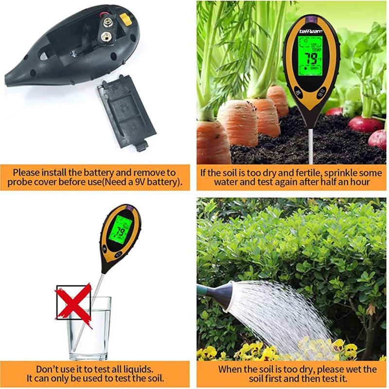 Para petani dan pecinta tanaman tentu ingin menjaga kesuburan tanaman dengan akurat. Taffware pengukur temperatur, kelembapan tanah, dan PH, adalah alat yang sangat berguna untuk mencapai tujuan tersebut. Dengan alat ini, pengguna dapat mengukur temperatur dan kelembapan tanah dengan mudah, serta mengetahui apakah tanah sudah kering atau basah sehingga dapat menentukan tanaman yang cocok guna menjaga kesuburan tanaman.