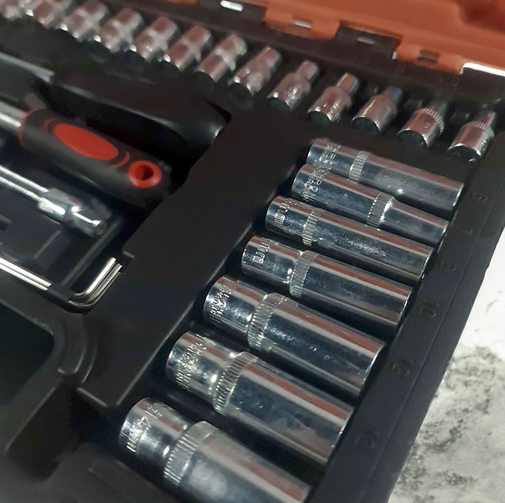 | Set Kunci Pas 53 in 1 Lengkap Set ini berisi 53 jenis alat yang terdiri dari mata kunci pas, berbagai jenis gagang kunci, hingga kunci L yang dirancang khusus untuk menjangkau area baut yang sulit diakses. Kombinasi alat-alat ini memungkinkan Anda menangani berbagai jenis pekerjaan, mulai dari perbaikan otomotif, elektronik, hingga peralatan rumah tangga. Semua jenis kunci pas yang disertakan memenuhi standar profesional, setara dengan merk besar seperti Ace, Bosch, dan iFixit. |