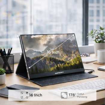 | Layar Besar Lebih Lega Hadir dengan layar 16 Inch, portable monitor ini punya sudut pandang yang luas. Menggunakan monitor untuk bekerja hingga gaming lebih nyaman berkat panel IPS dengan resolusi Full HD 1920 x 1200 pixels dengan visual terbaik. |