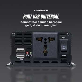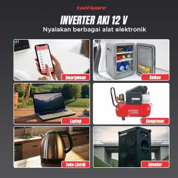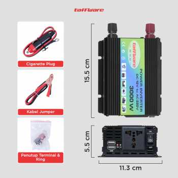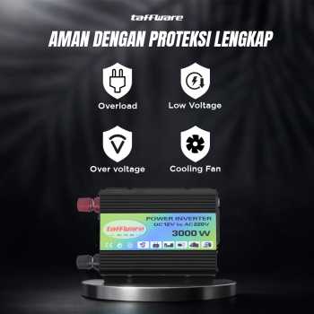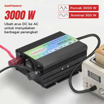 Kesulitan mengakses sumber listrik selama perjalanan atau camping? Power inverter mobil Taffware solusinya! Bekerja dengan mengubah arus DC dari aki menjadi arus AC yang siap pakai, kini Anda dapat menggunakan berbagai alat elektronik. Gelombang modified sine wave yang stabil dengan output puncak 3000 W, dapat mengisi daya aneka perangkat elektronik. Dilengkapi proteksi untuk mengurangi risiko kerusakan pada aki dan perangkat Anda.