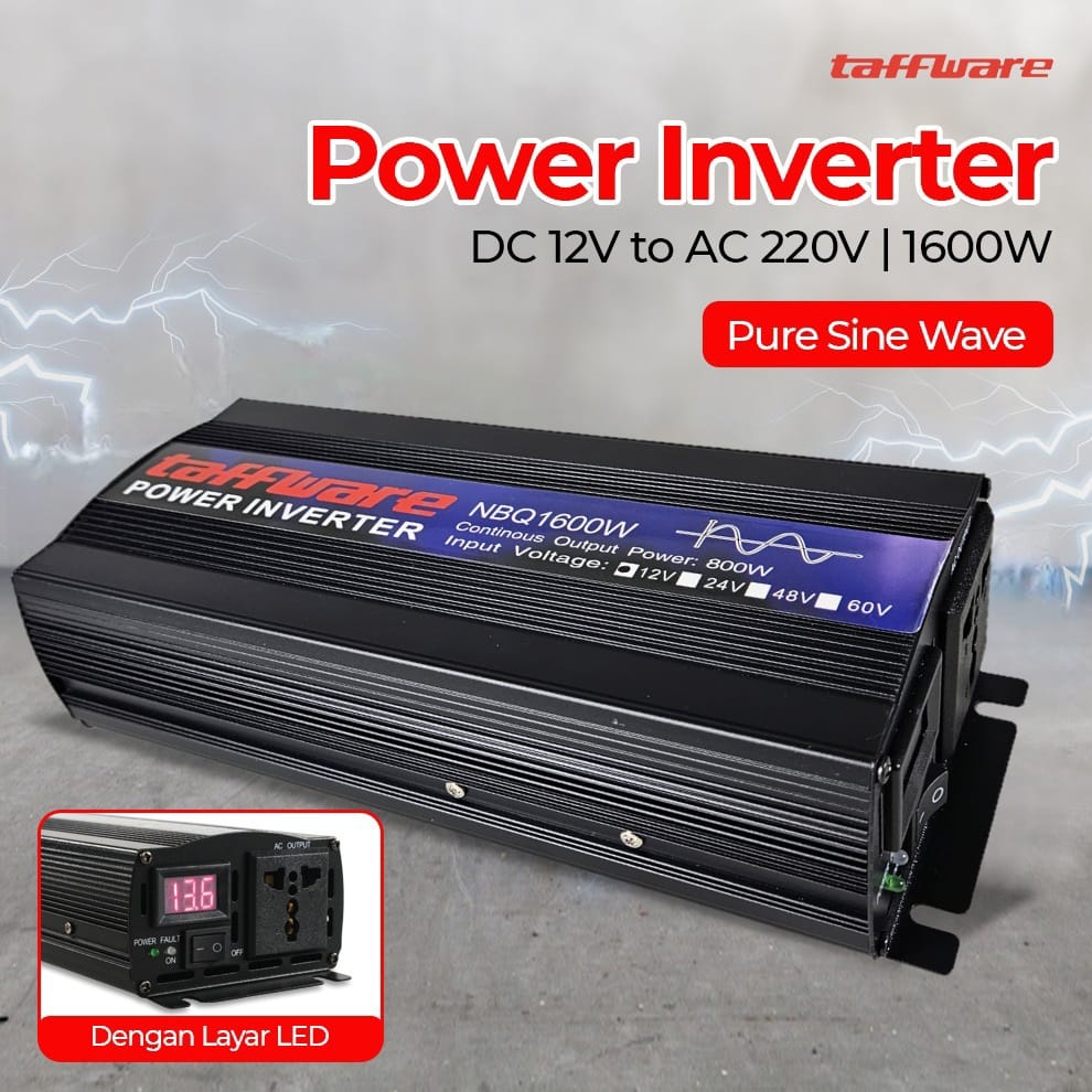 Kesulitan mengisi daya laptop saat di tengah perjalanan? Anda bisa menggunakan power inverter dari Taffware untuk mengatasinya. Alat ini akan mengubah arus DC yang berasal dari aki mobil menjadi arus AC yang diperlukan untuk menyalakan peralatan elektronik. Anda pun bisa mengisi daya laptop, smartphone, lampu, dan perangkat lainnya. Soal daya suplai tak perlu diragukan karena inverter ini mampu menyuplai daya hingga 1600 W.