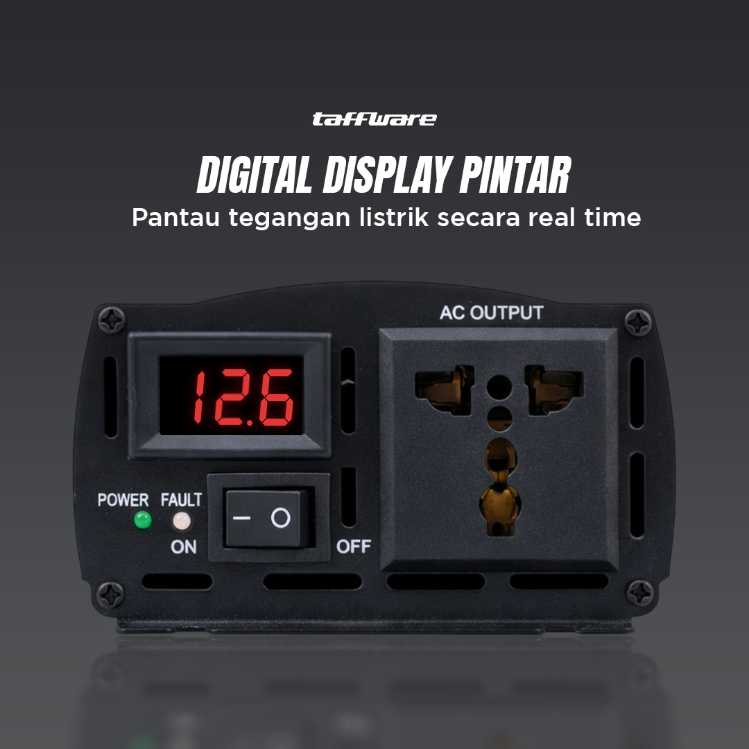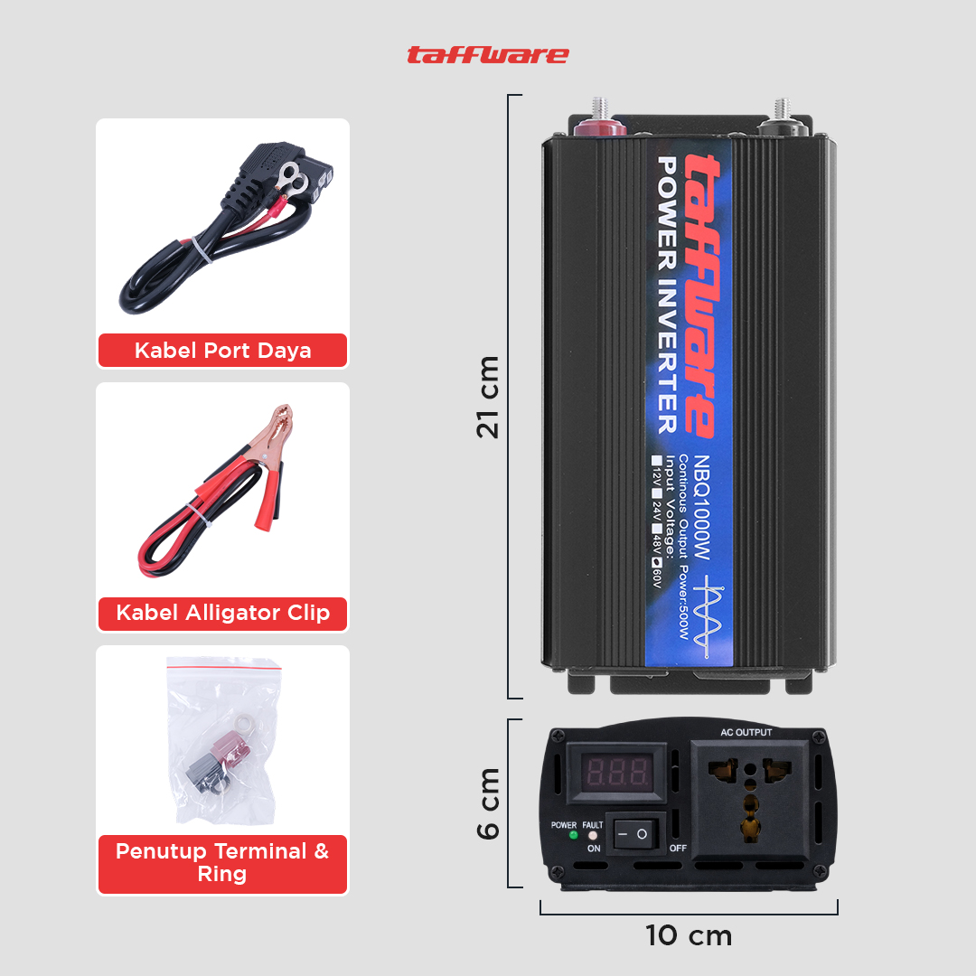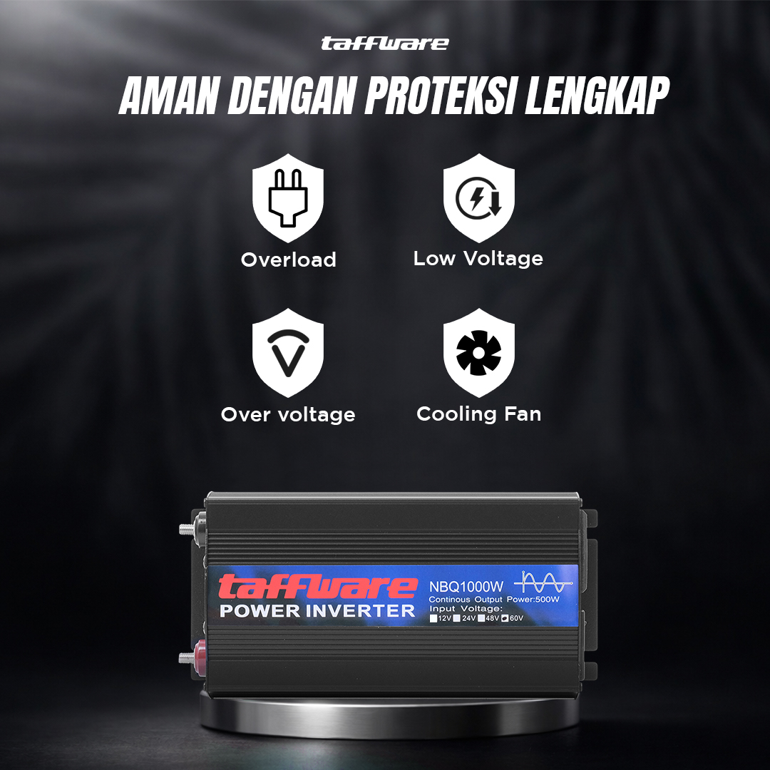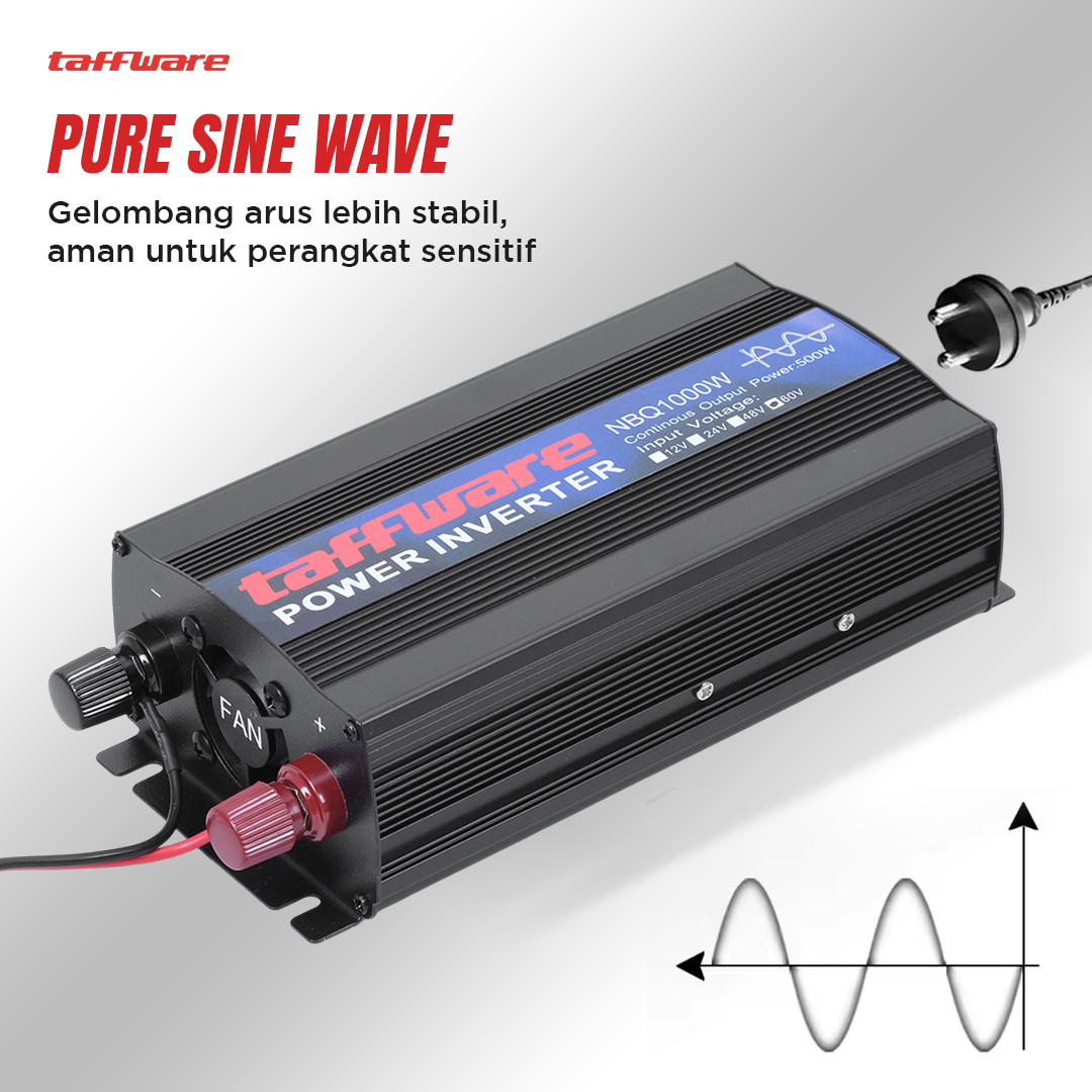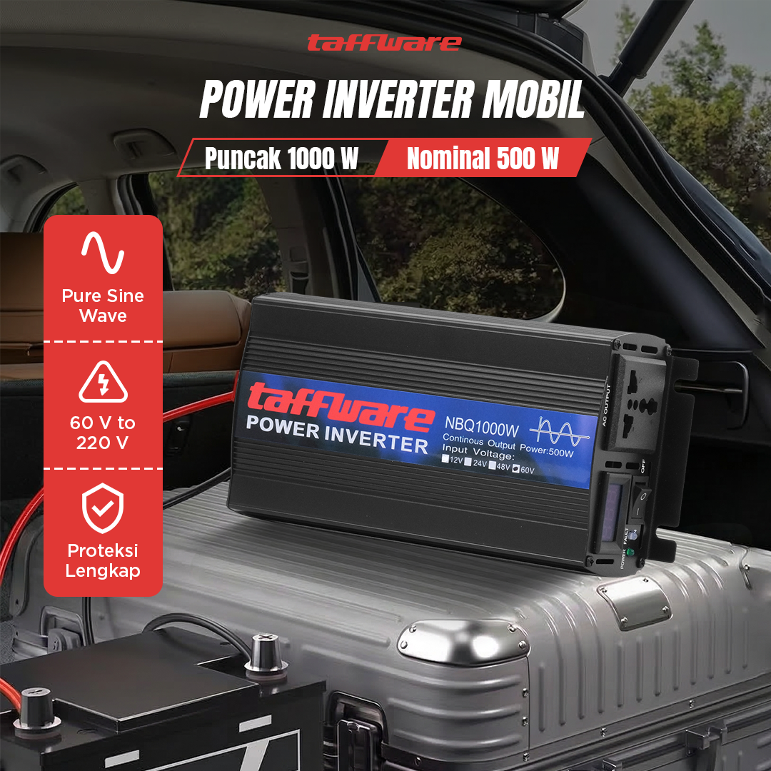 Kesulitan mengakses sumber listrik selama perjalanan atau camping? Power inverter mobil Taffware solusinya! Bekerja dengan mengubah arus DC dari aki menjadi arus AC yang siap pakai, kini Anda dapat menggunakan berbagai alat elektronik. Gelombang pure sine wave yang stabil dengan output puncak 1000 W, dapat mengisi daya laptop, smartphone, lampu, dan perangkat lainnya. Dilengkapi proteksi untuk mengurangi risiko kerusakan pada aki dan perangkat Anda.