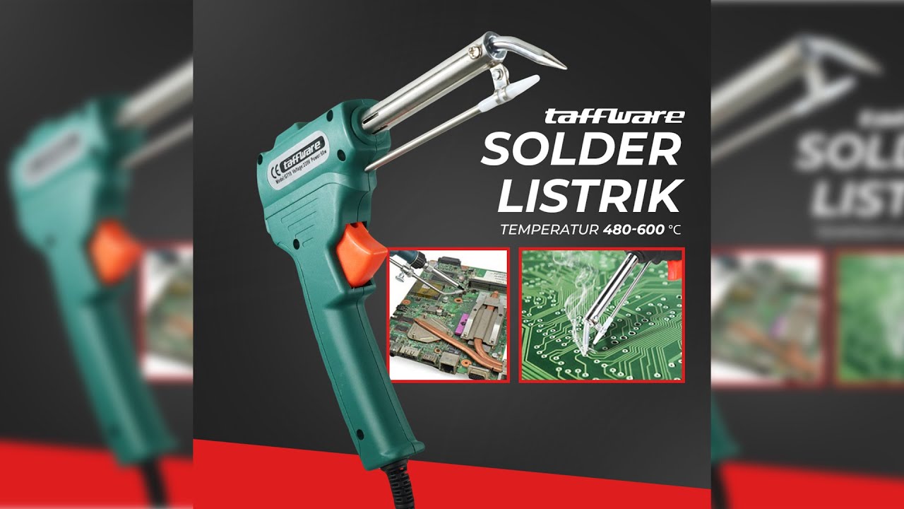 Taffware menghadirkan solder listrik terbaik untuk perbaikan berbagai komponen elektronik. Dengan bentuk menyerupai pistol, Anda akan lebih mudah memegang dan mengontrolnya. Anda bahkan tidak perlu mengatur kawat solder secara manual karena alat ini sudah dibekali sistem penarikan kawat yang efisien. Setelah kawat roll terpasang, cukup tekan pelatuknya untuk mengeluarkan kawat ke ujung solder.