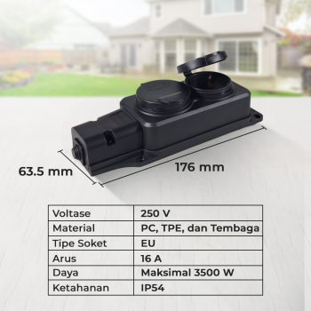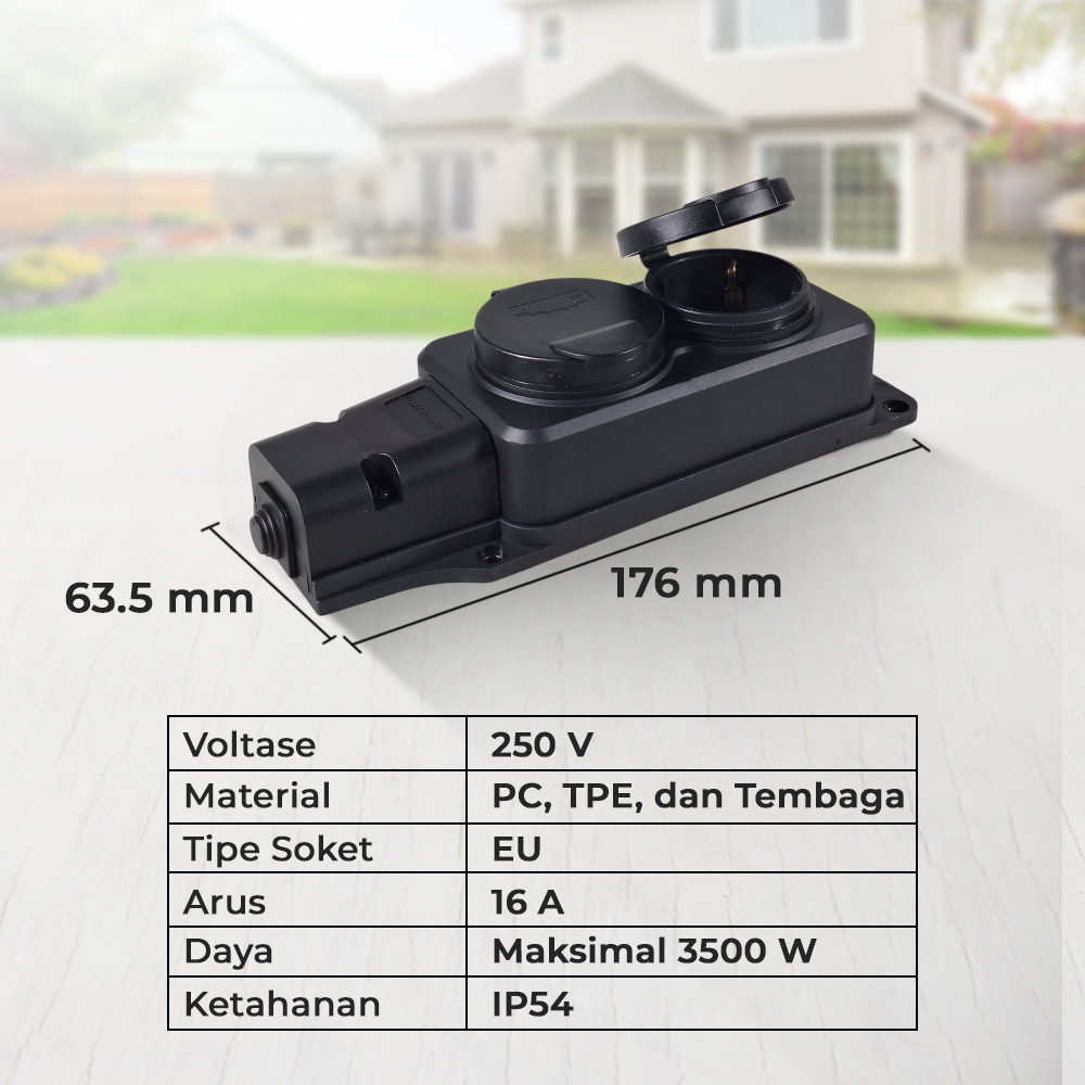 🔹 Mampu alirkan daya hingga 3500 W, 16 A, dan 250 V yang cocok untuk keperluan rumah.