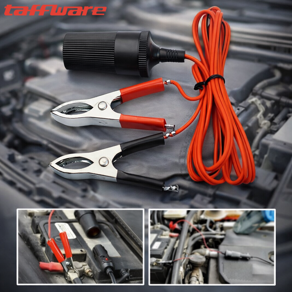 Terminal clip on ini hadir dengan soket cigarette lighter yang dapat digunakan untuk menambah soket cigarette lighter pada mobil Anda. Clip on pada alat ini dapat dihubungkan langsung ke aki ataupun sumber listrik lainnya. Soket cigarette lighter ini memiliki tegangan hingga 12 V sehingga dapat digunakan untuk berbagai perangkat.