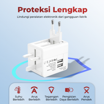 | Proteksi Lengkap Dilengkapi proteksi lengkap, mulai dari suhu berlebih hingga arus pendek, gunakan travel adaptor untuk mengisi daya perangkat tanpa khawatir rusak. |