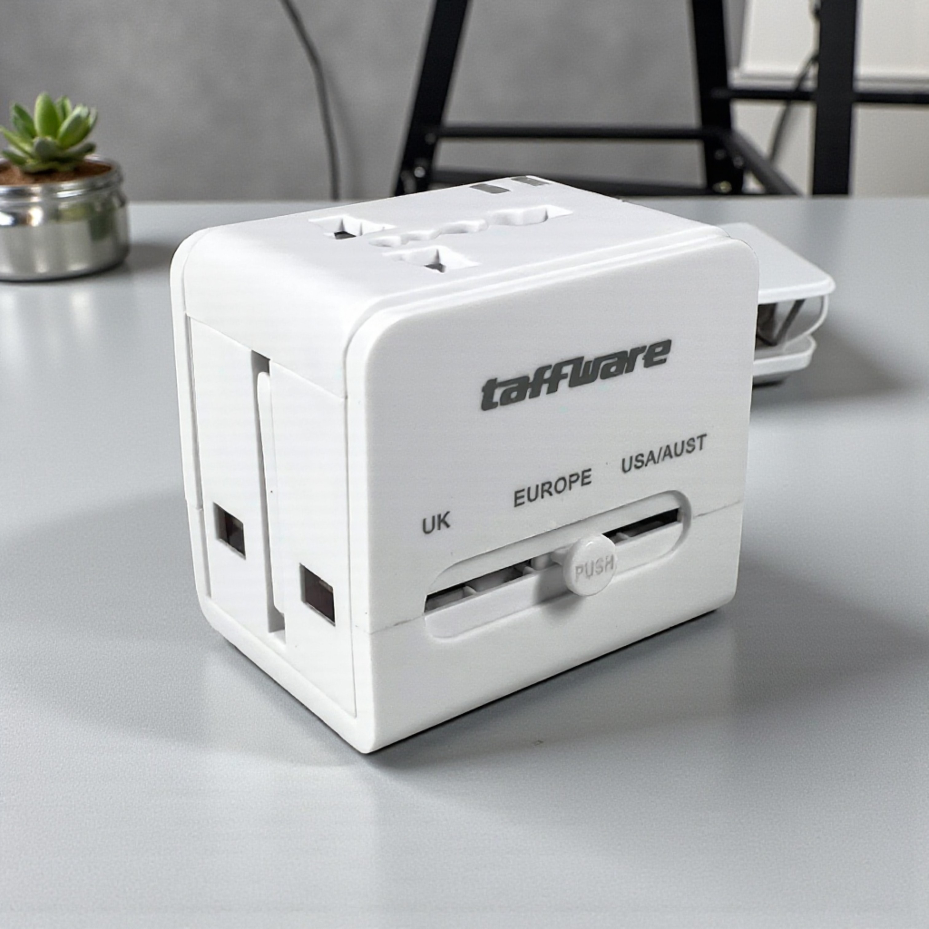 Travel adaptor ini cocok untuk Anda yang hobi traveling ke luar negeri. Adaptor ini menyediakan 3 buah jenis plug dari UK, EU, dan US/AU yang bisa digunakan di berbagai negara dengan soket listrik berbeda-beda. Kini Anda dapat mengisi daya perangkat di mana saja dengan mudah tanpa khawatir plug listrik tidak sesuai.