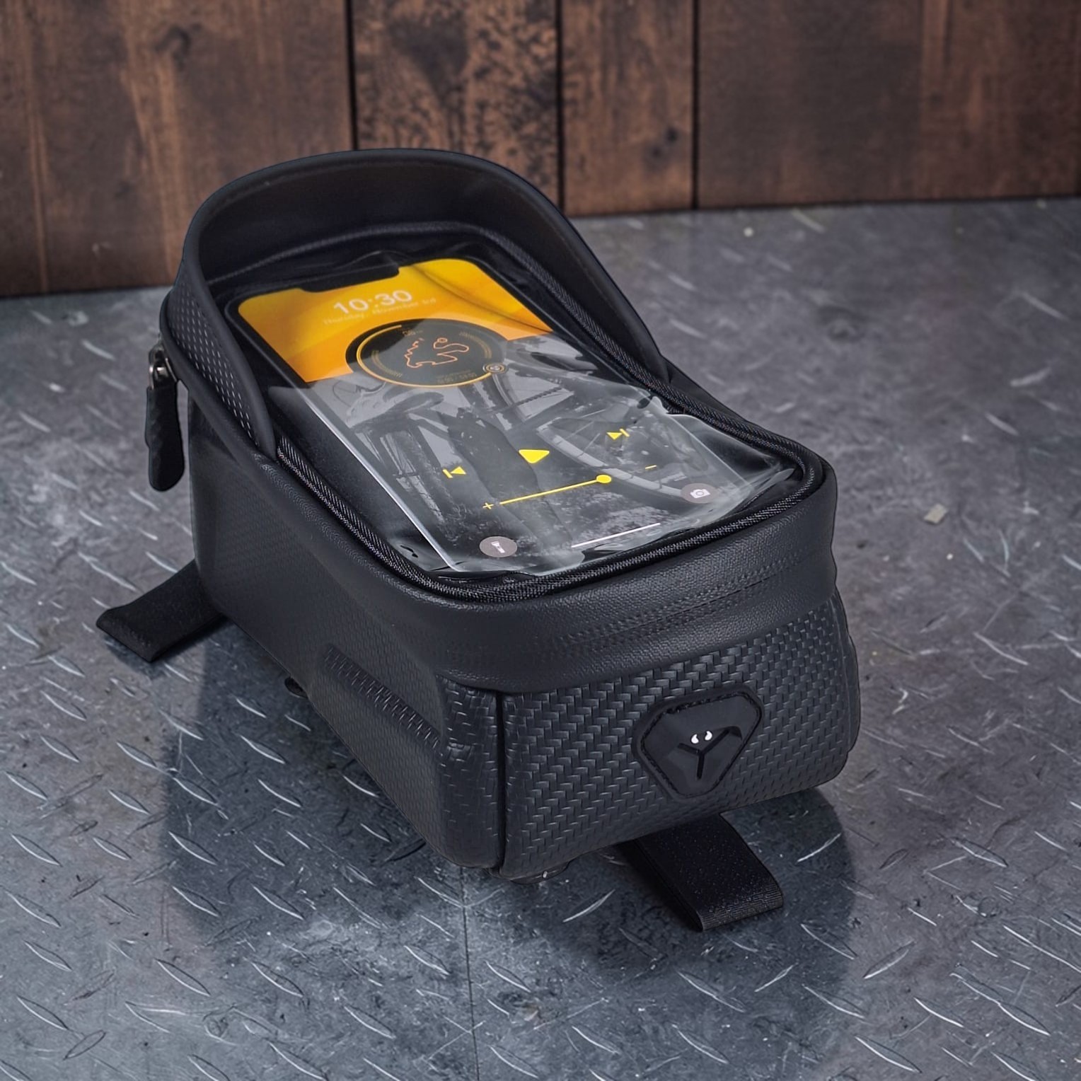 Untuk mempermudah membawa barang bawaan saat bersepeda, Anda dapat menggunakan tas sepeda yang satu ini. Tas dapat dipasang pada rangka tanpa mengganggu pergerakan Anda. Dirancang anti air sehingga aman saat bersepeda di kala hujan. Kompartemen utamanya mampu menampung banyak barang, seperti power bank hingga dompet. Terdapat juga slot khusus untuk smartphone agar mudah dilihat saat bersepeda. Kabel earphone pun makin rapi berkat adanya lubang kabel di salah satu bagian tas.