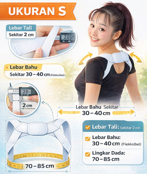 | Desain Tipis & Tidak Menggembung di Balik Pakaian Korektor punggung ini dirancang dengan desain yang lebih ramping dan ergonomis, sehingga dapat digunakan di dalam baju sehari-hari seperti kemeja kerja, kaos, atau seragam tanpa terlihat mencolok. Bagian punggung dan tali bahu mengikuti kontur tubuh dengan baik, membantu menjaga postur tetap lurus tanpa membuat pakaian tampak menggembung. |