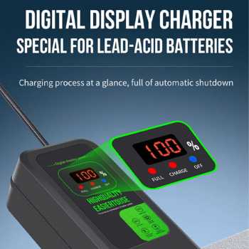 | Digital Display untuk Monitoring Akurat Layar digital yang cerah dan informatif memudahkan Anda memantau status pengisian kapan saja. Dari daya rendah hingga penuh, semua informasi ditampilkan secara detail, sehingga Anda memiliki kontrol penuh terhadap proses pengisian baterai. |