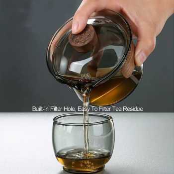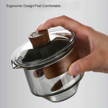 | Desain Elegan dan Tradisional Bentuk klasik gaiwan berpadu dengan material kaca modern, menghasilkan tampilan yang anggun dan estetik. Transparansi kaca memungkinkan Anda melihat daun teh mekar dan warna minuman yang semakin pekat. Hal ini menambah kesan artistik dalam pengalaman minum teh. |