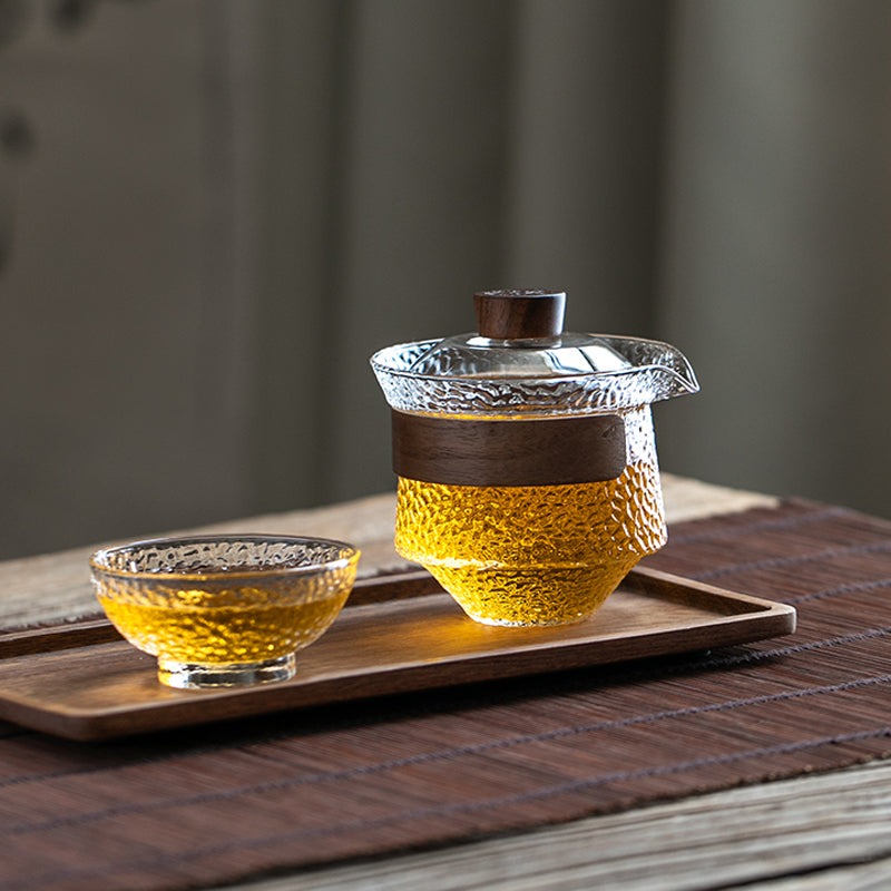 | Tutup Kaca dengan Knop Kayu Tutup kaca membantu menjaga suhu seduhan tetap stabil selama proses brewing. Knop kayu memudahkan buka-tutup sekaligus aman disentuh. Desain ini juga mendukung teknik kontrol seduhan ala Chinese tea brewing. |