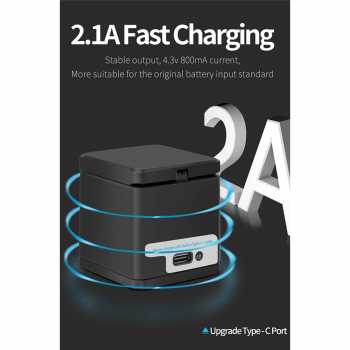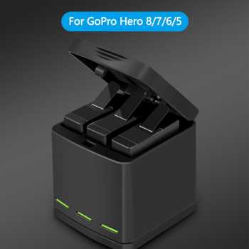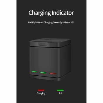 Dengan menggunakan charger untuk baterai GoPro ini Anda dapat mengisi ulang daya baterai secara terpisah dari kamera GoPro Hero 8/7/6/5. Terdapat 3 buah slot untuk mengisi 3 baterai secara bersamaan. Bentuk dari charger ini memiliki penutup sehingga dapat digunakan sebagai box penyimpanan baterai.