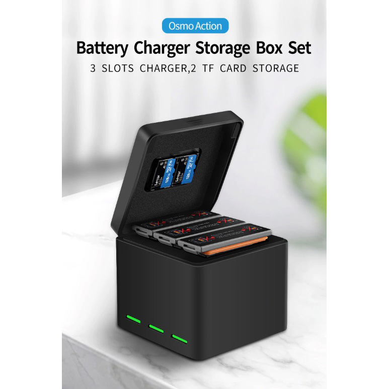 - 1 x TELESIN Charger Baterai 3 Slot Storage Box for DJI Osmo Action - OS-BCG-003