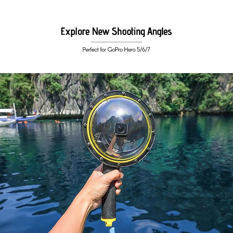 Dome Port ini membuat Anda dapat mengambil efek foto belahan air dan udara secara jelas. Dapat digunakan untuk kamera aksi GoPro Hero 8 dan dikombinasikan dengan floaty Grip Bobber.