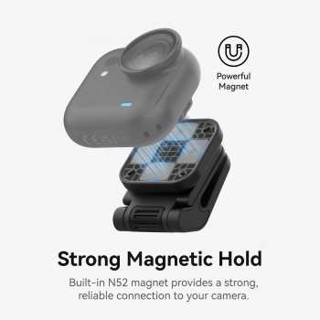 | Magnetic Base Super Kuat Dilengkapi magnet N52 berkekuatan tinggi yang memberikan daya tarik kuat dan stabil. Kamera tetap terkunci dengan aman bahkan saat digunakan untuk aktivitas bergerak seperti jogging atau bersepeda. Sistem magnet ini meminimalkan risiko lepas dan meningkatkan rasa aman saat shooting outdoor. |