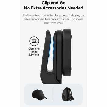 | Anti Slip Serrated Clamp Desain gigi bagian dalam membantu mencengkeram kain atau strap dengan lebih kuat. Clamping range 2.5–4 mm memastikan kompatibel dengan sebagian besar brim topi dan tali backpack. Kamera tetap stabil tanpa mudah bergeser saat digunakan. |