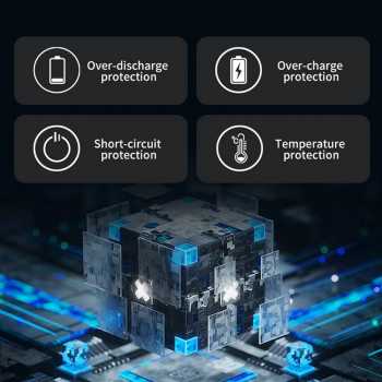 | Proteksi Keamanan Lengkap Soal keamanan, power bank ini sudah pasti bisa Anda andalkan. Terdapat berbagai jenis proteksi yang dapat melindungi berbagai perangkat Anda selama proses pengisian daya, mulai dari proteksi over discharge, over charge, temperature, hingga perlindungan arus pendek listrik. |