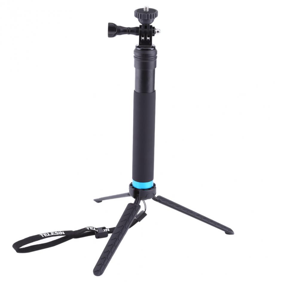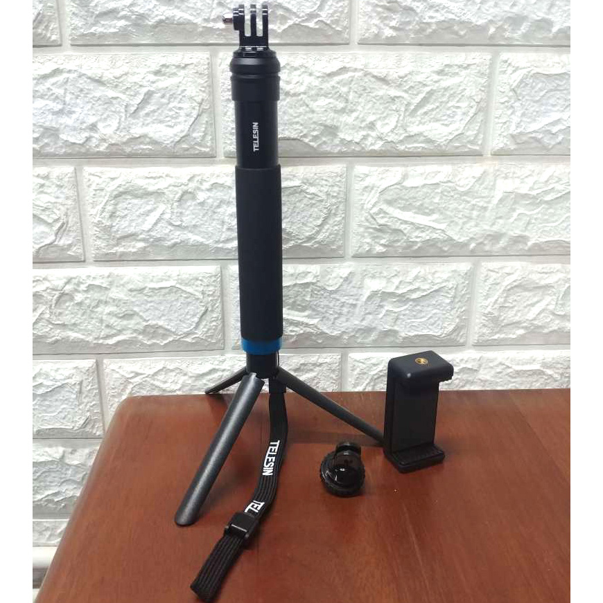 Telesin menciptakan produk 2 in 1 yaitu monopod/tongsis dan tripod pada satu produk. Anda dapat memasang kaki tripod pada bagian handle untuk merubah fungsi monopod menjadi tripod. Anda juga mendapatkan mount GoPro dan juga smartphone holder sehingga monopod ini dapat digunakan ke berbagai perangkat.