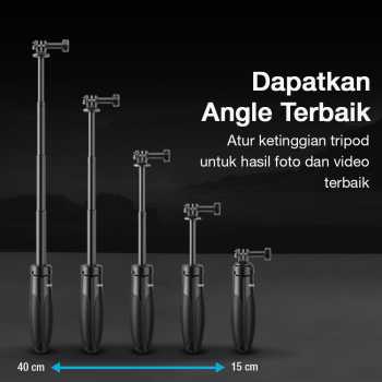| Dapatkan Angle Terbaik Leher tripod mini fleksibel dapat diatur hingga ketinggian 40 cm untuk mendapatkan hasil foto dan video terbaik. Kini Anda bisa mendapatkan angle terbaik di mana saja. Fleksibilitas ini memudahkan Anda menyesuaikan sudut pengambilan gambar sesuai kebutuhan konten. |