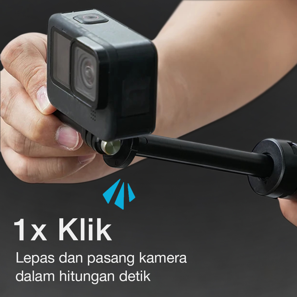 | Lepas Pasang Kamera Praktis Sistem quick release memungkinkan Anda memasang dan melepas kamera hanya dalam hitungan detik. Cukup 1x klik pada tombol kunci tanpa repot melepas baut atau konektor. Proses ini sangat membantu saat berpindah lokasi pengambilan gambar dengan cepat. |