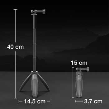 Abadikan momen spesial di mana saja kini lebih praktis dengan tripod mini TELESIN. Menawarkan ukuran mini, Anda dapat membawa dan menggunakan tripod kapan saja. Bagian leher fleksibel dapat diatur ketinggiannya hingga 40 cm. Lengkap dengan mount universal yang kompatibel dengan berbagai model dan merek action cam.