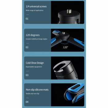 | Multifungsi Skrup 1/4 Tripod ini punya mount dengan lubang skrup 1/4 yang memungkinkan Anda dapat memasang aksesoris tambahan seperti lighting ataupun mic. |