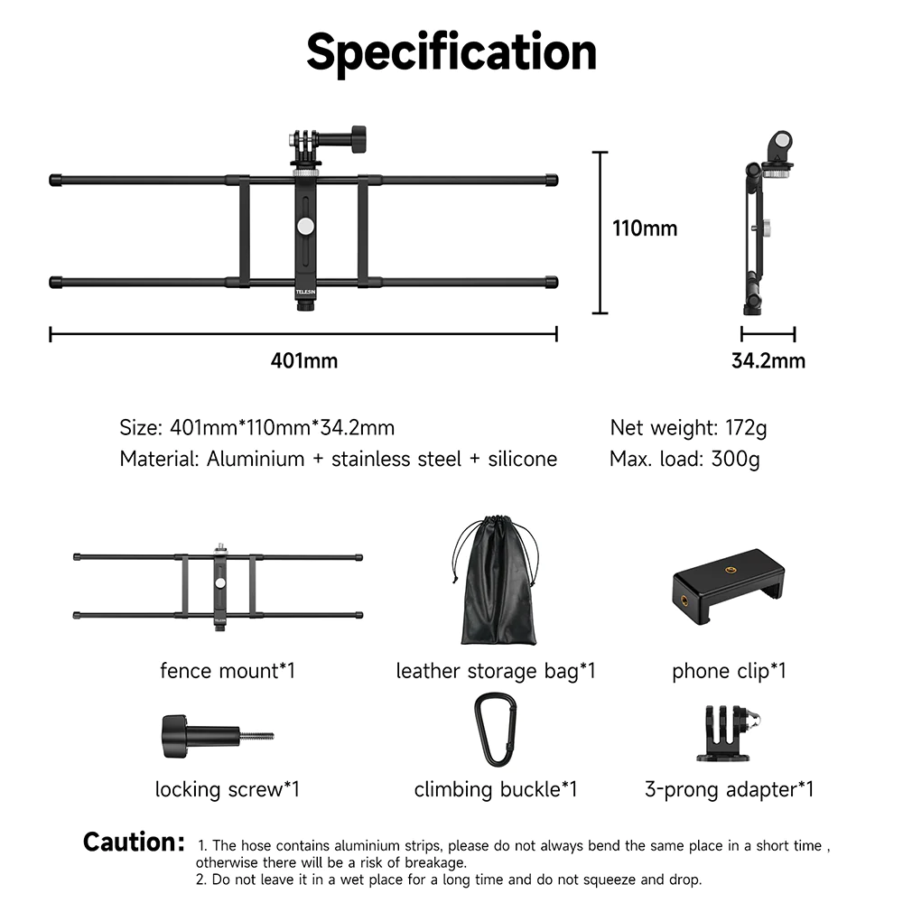 Rekam aktivitas Anda dengan lebih leluasa menggunakan fence mount dari TELESIN ini. Anda dapat meletakkan kamera aksi atau bahkan smartphone Anda untuk merekam segala aktivitas yang ingin Anda rekam. Rangka yang fleksibel membuat Anda dapat menggantungkan mount ini pada pagar, rangka besi, jaring net, dan lainnya.