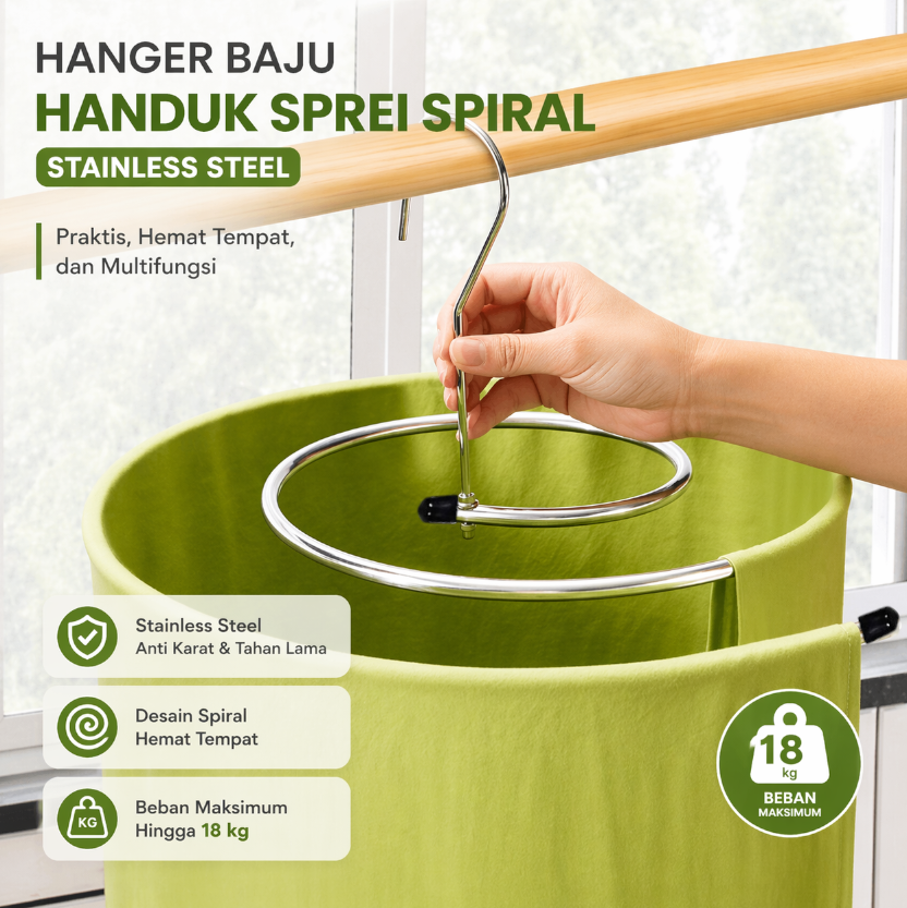 Menjemur aneka jenis cucian semakin praktis dengan hanger baju dari TIANTIAN. Hadir dengan model spiral, hanger ini dapat menghemat ruang untuk menjemur. Cocok digunakan untuk menjemur cucian berukuran besar, seperti sprei, selimut, hingga handuk. Kini Anda bisa menjemur lebih banyak cucian dengan hanger baju TIANTIAN.