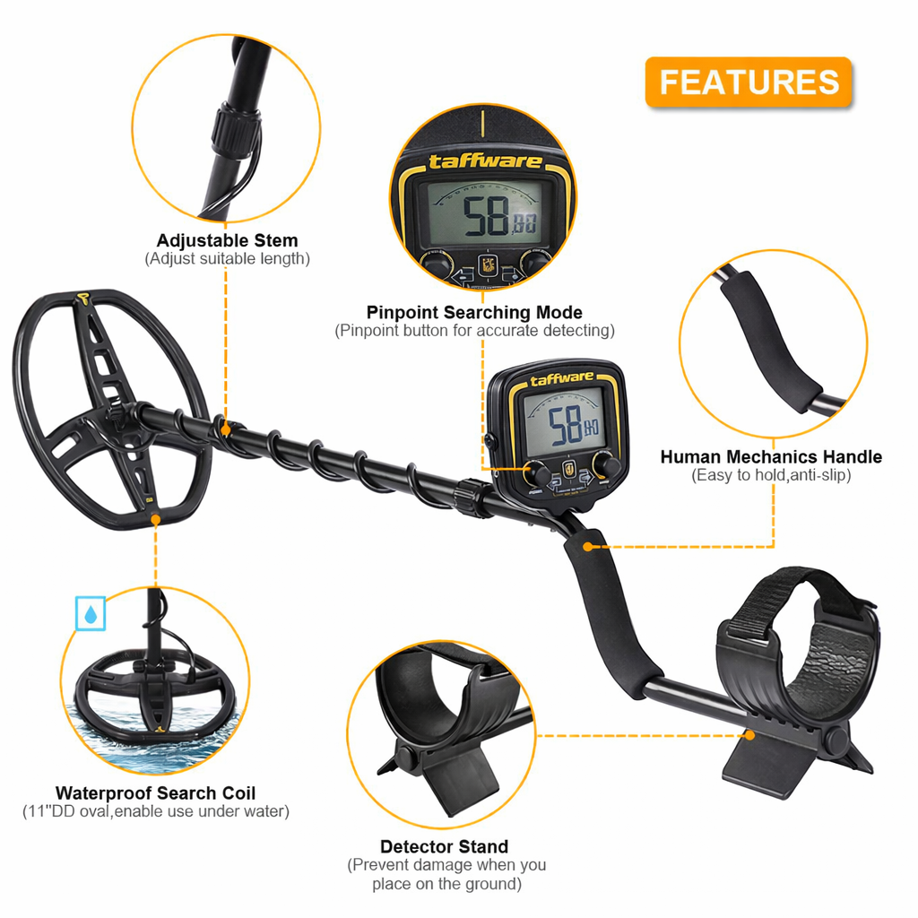 | Sertifikasi Waterproof Besi bagian bawah metal detektor ini memiliki sertifikasi waterproof. Hal tersebut membuat Anda dapat menggunakannya untuk mencari metal di genangan air yang dangkal. |