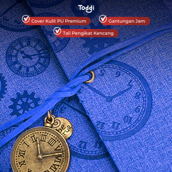 | Sistem Penguncian Unik Jurnal ini punya sistem penguncian yang unik, yaitu menggunakan tali. Cukup lilitkan dan selipkan talinya untuk menutup buku. Dilengkapi gantungan berbentuk jam yang menambah karakter. |