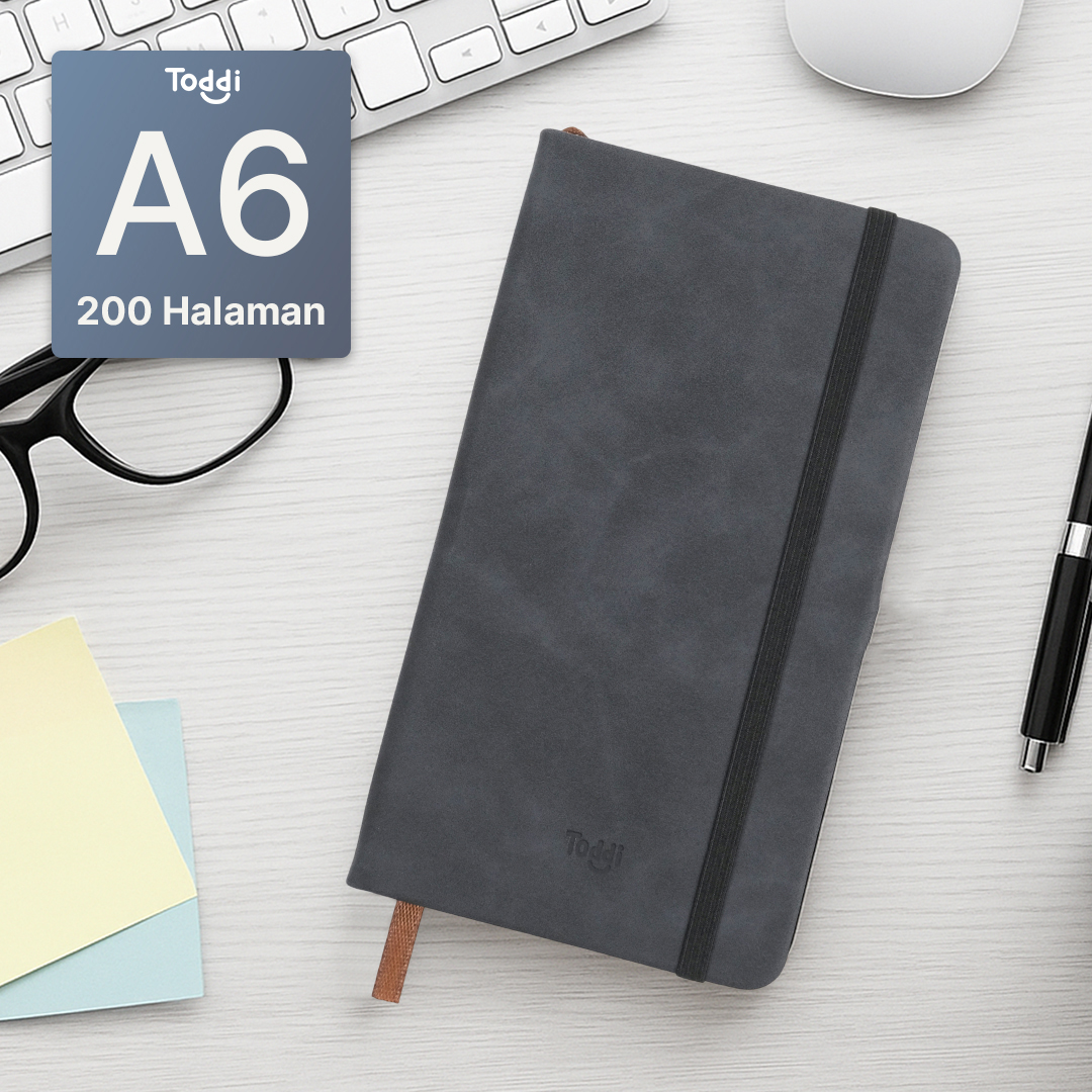 Jurnal elegan dengan cover suede premium, 200 halaman tebal anti tembus, jahitan fleksibel 180°, dan slot pulpen praktis. Cocok untuk ide harian, kerja, dan kreativitas on-the-go.